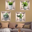 Mufunye 4 Adet 3d Yeşil Bitki Duvar Sticker, Vinyl Materyal, Su Geçirmez, Kolay Yapıştır, Pencere-kapı-cam-usta Çamaşırı, 30x30 Cm, Multirenkli Çok Renkli