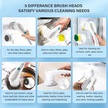 Mufunye 5 Fırça Başlıklı Şarjlı Çok Amaçlı Elektrikli Temizleme Cihazı - Yer, Banyo, Mutfak, Fayans Ve Küvet İçin Beyaz