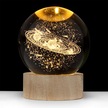 Mufunye 6cm Dünya Kristal Top + 6cm Yuvarlak Isımsı Işıklı Ahşap Tabanlı Usb Güneş Sistemi 3d Işıklı Masaüstü Dekoratif Aydınlatıcı Hediyelik Ürün