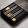 Mufunye Aile İçin Yenilikçi Japon Stili Dayanıklı Alyuminyum Çubuk Çatal, Tek Kişilik Hijyenik Kullanim, Yüksek Sıcaklığa Dayanır - Siyah Altın Desenli 5'li Paket Diğer