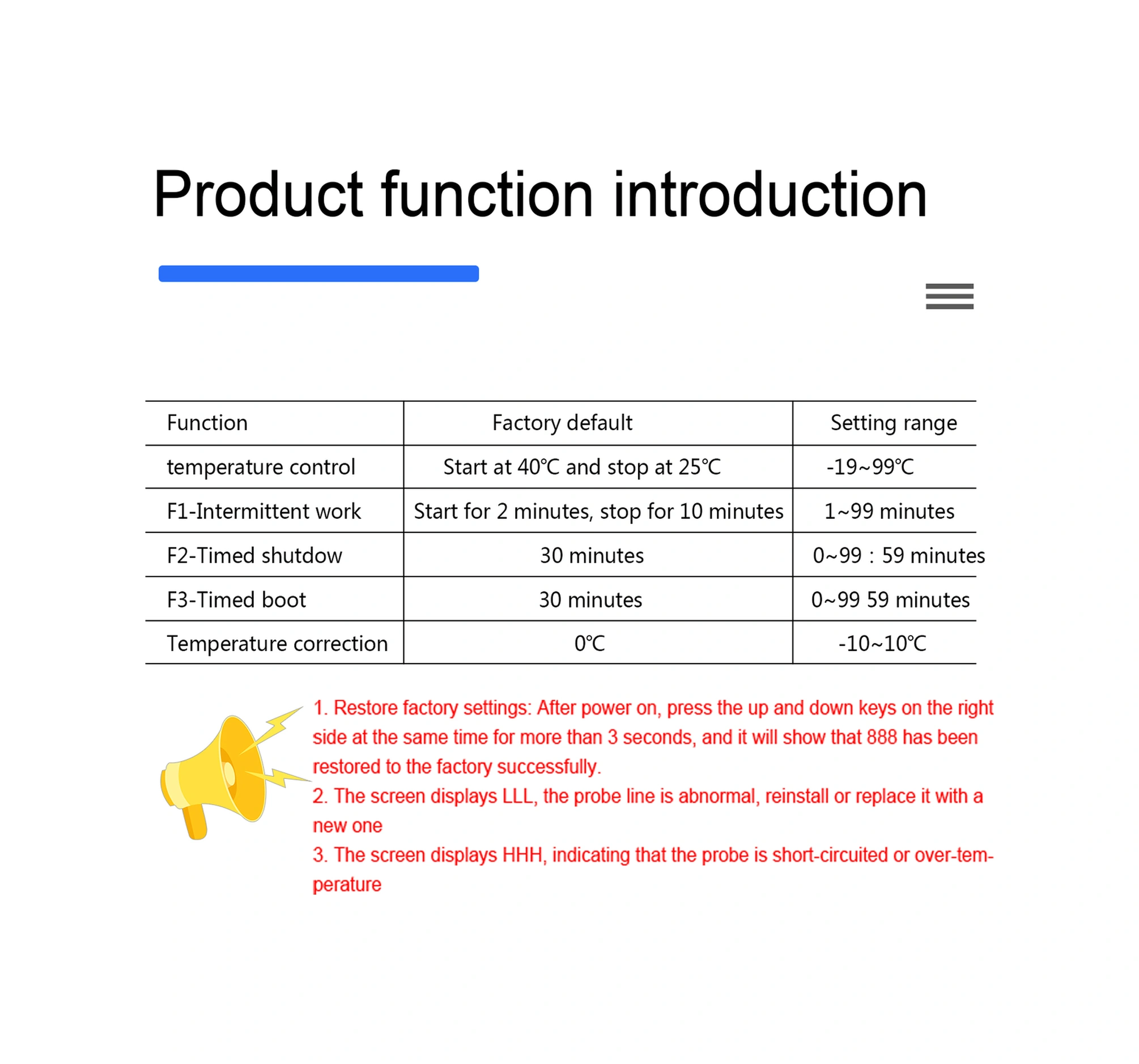 Mufunye Akıllı Sıcaklık Kontrol Cihazı W3103 - 30a/dc24v, Dijital Gösterim, Ayarlanabilir -50 110 C, Tam Otomatik Isı Regülatörü