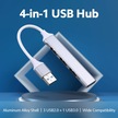 Mufunye Alüminyum 4-port Usb Hub: 1x Usb3.0 + 3x Usb2.0 Çoklayıcı, Gümüş Renk, 8cm Kablolu