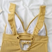 Mufunye Bayanlar İçin Sırt Açık Bağcıklı V-yaka Patalonlu Mayo, Pamuklu Döşeme, Pudra Desenli, Asya Numara Xl Turuncu Sarı