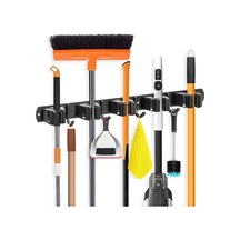 Mufunye Duvar Tipi Süpürge Ve Mop Tutucu - 5 Konum + 4 Paslanmaz Çelik Kanca, Otomatik Tutucu, Özlü Batırmalı Montaj, Garaj/mutfak/üçgen İçin