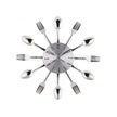 Mufunye Gümüş Renkli Paslanmaz Çelik Yemek Takımı Duvar Saati - Restoran İçin Sessiz Fonksiyonel Dekoratif Saat Gümüş