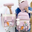 Mufunye Klasik Kumaş Çanta Seti Sırt Çantası + El Çantası + Clutch + Kalem Kutusu - Pembe Renkli Yumuşak Dokuma, Geniş Kapasite, Sevimli Ayı Figürü İle Dekore Çok Renkli