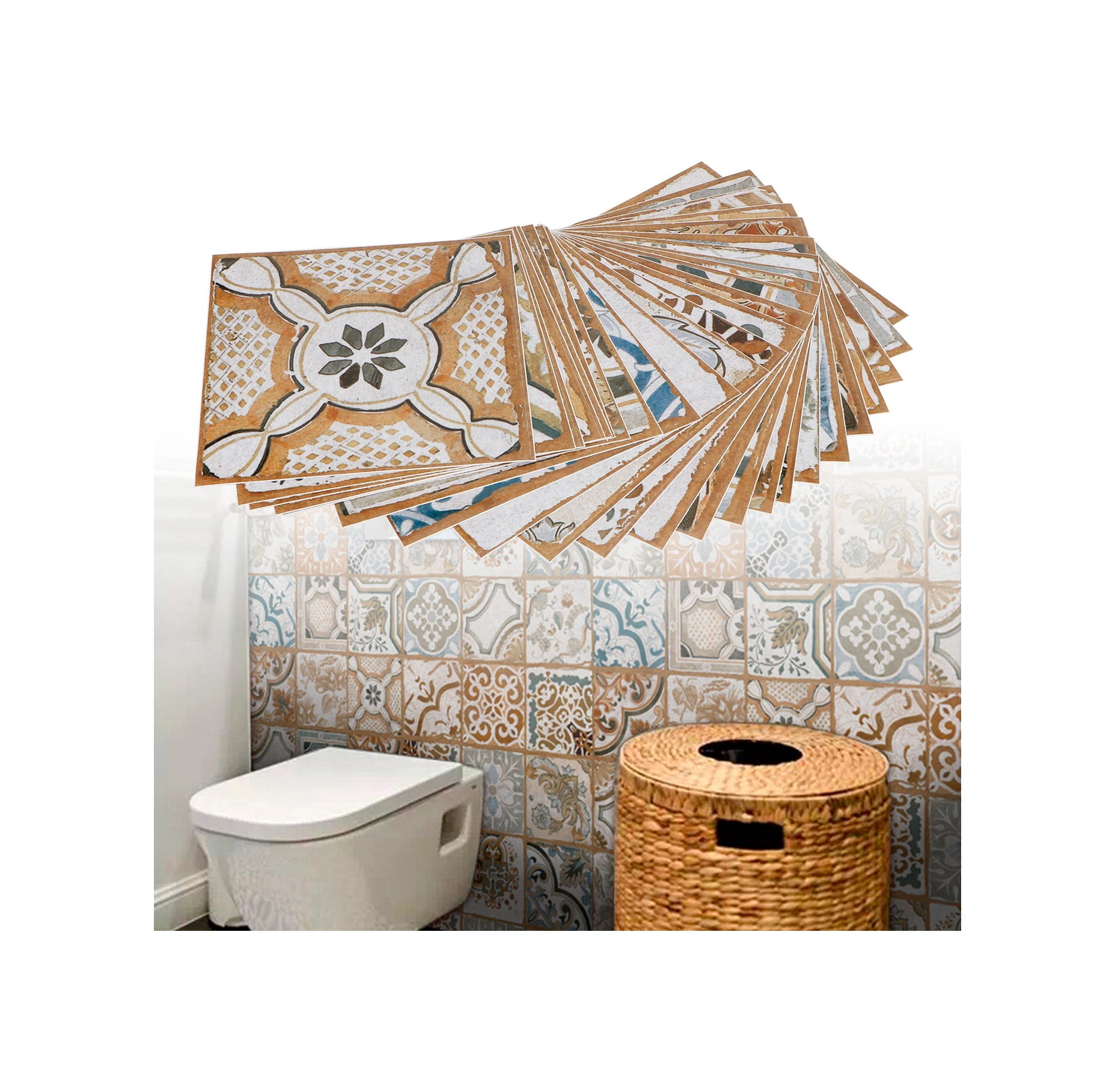 Mufunye Pvc Retro Renkli Simülasyon Çini Desenli 24 Adet 15x15cm Ev Dekorasyonu Otomatik Yapışkan Suya Dayanıklı Duvar Sticker Diğer