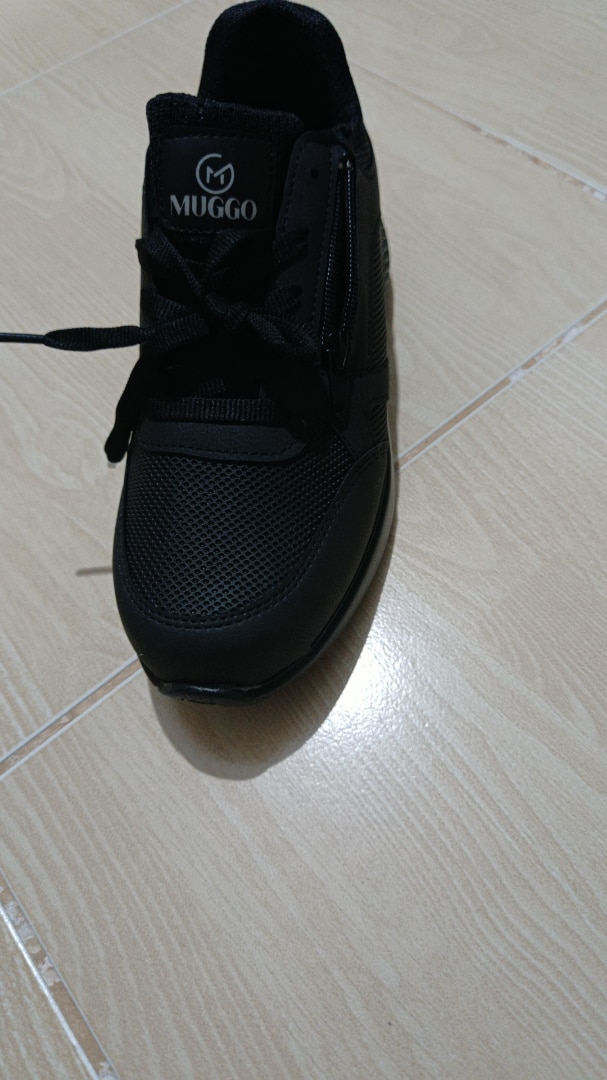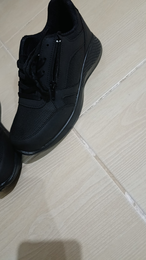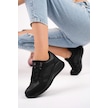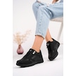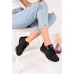 Muggo Asel Garantili Kadın Ortopedik Günlük Bağcıklı Yandan Fermuarlı Rahat Sneaker Spor Ayakkabı Siyah