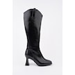 Muggo Astoria Küt Burun Yandan Fermuarlı Topuklu Kadın Çizme SİYAH RUGAN