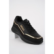 Muggo Coco Garantili Kadın Ortopedik Günlük Bağcıklı Şık Rahat Sneaker Spor Ayakkabı Siyah - Altın