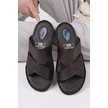 Muggo Eco Garantili Erkek Günlük Hakiki Deri Rahat Yumuşak Taban Ortopedik Terlik Kahverengi