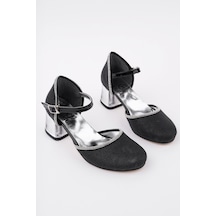 Muggo Else Bilekten Bağlamalı Simli Kız Çocuk Kısa Topuklu Ayakkabı Siyah