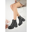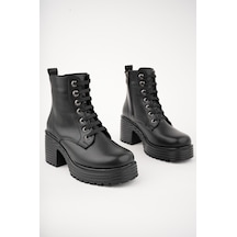 Muggo Grazi Garantili Kalın Taban Platform Topuklu Fermuarlı Bağcıklı Kadın Bot 001
