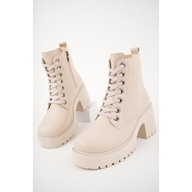 Muggo Grazi Garantili Kalın Taban Platform Topuklu Fermuarlı Bağcıklı Kadın Bot 001