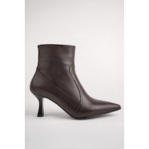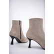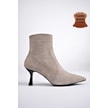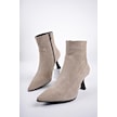 Muggo Natalie Garantili Hakiki Deri Sivri Burun Fermuarlı İnce Topuklu Kadın Bot Vizon Süet Vizon