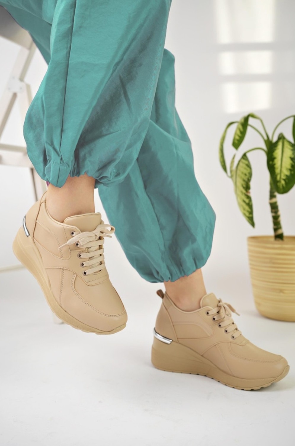 Muggo Nepal Garantili Kadın Ortopedik Yüksek Taban Günlük Bağcıklı Sneaker Spor Ayakkabı 001