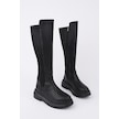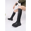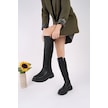 Muggo Nerox Kalın Taban Streç Detaylı Fermuarlı Kadın Çizme - Siyah
