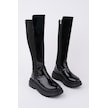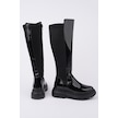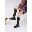 Muggo Nerox Kalın Taban Streç Detaylı Fermuarlı Kadın Çizme SİYAH RUGAN
