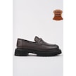 Muggo Paradise Hakiki Deri Kalın Taban Günlük Casual Makosen Kadın Loafer Ayakkabı Kahverengi