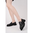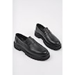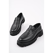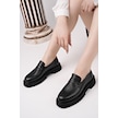 Muggo Paradise Hakiki Deri Kalın Taban Günlük Casual Makosen Kadın Loafer Ayakkabı Siyah