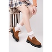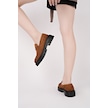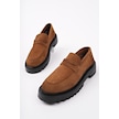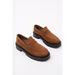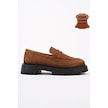 Muggo Paradise Hakiki Deri Kalın Taban Günlük Casual Makosen Kadın Loafer Ayakkabı Taba Süet