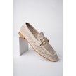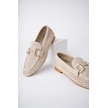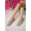 Muggo Phuket Garantili Metal Tokalı Lazerli Nefes Alabilen Deri Kadın Loafer Günlük Ayakkabı Bej