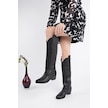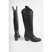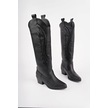 Muggo Rodeo Dikiş Detaylı Kalın Topuklu Kovboy Kadın Çizme siyah
