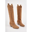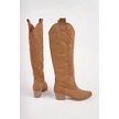 Muggo Rodeo Dikiş Detaylı Kalın Topuklu Kovboy Kadın Çizme TABA SÜET