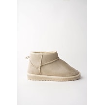 Muggo Snow Garantili Unisex Çocuk Kalın Taban İçi Tüylü Günlük Mini Yarım Bot Bej