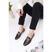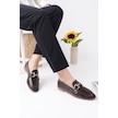 Muggo Stride Metal Tokalı Kadın Günlük Loafer Ayakkabı Kahverengi