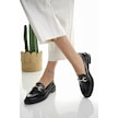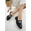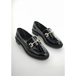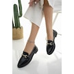 Muggo Sussie Garantili Metal Tokalı Kadın Loafer Günlük Ayakkabı Siyah Rugan