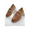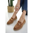 Muggo Sussie Garantili Metal Tokalı Kadın Loafer Günlük Ayakkabı - Süet Taba