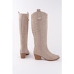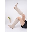 Muggo Texas Sivri Burun Nakışlı Kalın Topuklu Kadın Kovboy Western Çizme Bej Süet