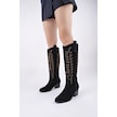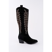 Muggo Texas Sivri Burun Nakışlı Kalın Topuklu Kadın Kovboy Western Çizme Sıyah Suet