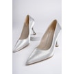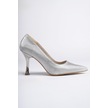 Muggo Yowel Garantili Sivri Burun Kadın Topuklu Stiletto Ayakkabı Gümüş