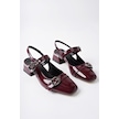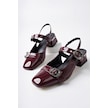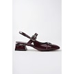 Muggo Yuqi Arkası Açık Küt Burun Çift Kemerli Kadın Günlük Klasik Kısa Topuklu Ayakkabı Bordo Rugan
