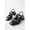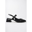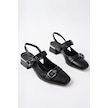Muggo Yuqi Arkası Açık Küt Burun Çift Kemerli Kadın Günlük Klasik Kısa Topuklu Ayakkabı siyah