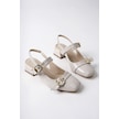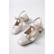 Muggo Yuqi Arkası Açık Küt Burun Çift Kemerli Kadın Günlük Klasik Kısa Topuklu Ayakkabı Ten Rugan