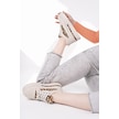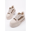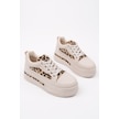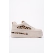 Muggo Zarina Kadın Kalın Taban Leopar Desenli Bağcıklı Günlük Sneaker Spor Ayakkabı Ten
