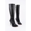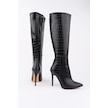 Muggo Zest Kroko Desenli Sivri Burun Fermuarlı İnce Topuklu Kadın Çizme siyah
