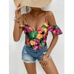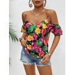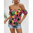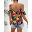Munn Collection Kadın Askılı Omuzlardan Açık Çiçek Baskılı Bluz Desenli