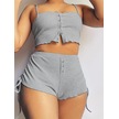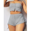 Munn Collection Kadın Ip Askılı Crop Bluz Ve Yanlardan Büzgülü Ikili Kaşkorse Short Takım Gri