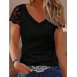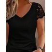 Munn Collection Kadın Kısa Kollu V Yakalı Dantel Detaylı Viskon Bluz Siyah