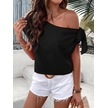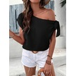 Munn Collection Kadın Tek Omuzu Açık Koldan Bağlamalı Janjan Krep Bluz Siyah