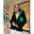 Munn Collection Kadın Uzun Kollu Renkli Cep Ve Fermuar Detay Peluş Mont Siyah