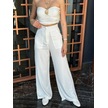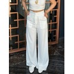 Munn Collection Kadın Yüksek Bel Geniş Paça Detaylı Cepli Ithal Krep Pantolon Beyaz