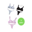 Murays Kadın 3lü Taşlı Mikro Sütyen Takım Gri/kırmızı/pembe