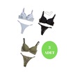 Murays Kadın 3lü Taşlı Mikro Sütyen Takım Gri/siyah/haki