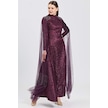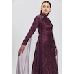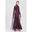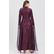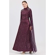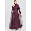 Mürdüm Omuzda Etek Ucuna Uzanan Tül Üzeri Taş Kombinli Dantelli A Mürdüm
