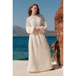 Eteği Volanlı Uzun Elbise Kırık Beyaz